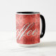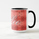 Corales floridos, tazas de diseño floral negro y oscuro, personalizan la flor blanca a su elección de color. El texto del café se puede cambiar a un nombre o el texto se puede quitar.