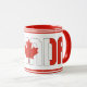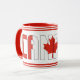 Coffee Mug Patriótico de Bandera Nacional de Canadá con la encantadora inscripción "Canadá", que está impregnada con el patrón y los colores de la bandera nacional. El diseño se termina con las dos líneas delgadas dobles en colores complementarios en la parte superior y en la parte inferior de la taza. El color dentro de la taza y en el asa de la taza está perfectamente equilibrado con el resto de los colores. Aquí está el fantástico compañero de la taza diaria de café. El diseño encantador, los colores preciosos y el aspecto único lo convierten en un regalo perfecto para cualquier ocasión. © 2022 CountriesOfTheWorld