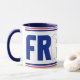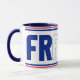Bandera Nacional de Francia Patriótica Café Mug con la encantadora inscripción "Francia" que está impregnada con el patrón y los colores de la bandera nacional. El diseño se termina con las dos líneas delgadas dobles en colores complementarios en la parte superior y en la parte inferior de la taza. Los colores del interior de la taza y del asa de la taza están equilibrados con el resto de los colores de la taza. Los colores de línea se pueden cambiar a cualquier color de su gusto pulsando el botón "Editar diseño". Aquí está el fantástico compañero de la taza diaria de café. El diseño encantador, los colores preciosos y el aspecto único lo convierten en un regalo perfecto para cualquier ocasión. © 2023 Países Del Mundo