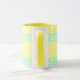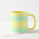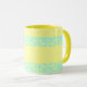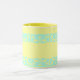 Borde medieval de hojas deslizantes y elementos arquitectónicos en azul verde azulado claro sobre un fondo amarillo cremoso.