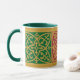 Elegantes Navidades rojos y verdes arte de vacaciones con un vintage patrón de fleur de lis en oro.