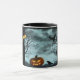 Vibrante diseño de Halloween que incluye una calabaza brillante con ojos y dientes brillantes en un paisaje oscuro con árboles y cuervos. Si lo desea, oculte el tipo de letra haciendo clic en Editar diseño.