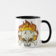 Calavera y huesos cruzados con colmillos y muchas llamas coloridas.