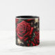 Taza Calaveras doradas y rosas rojas desgarran el glamo