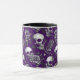 Un morado gótico y calaveras grises y grises y rosas atragantados.