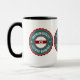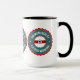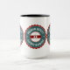 Turquesa y diseño circular de color rojo oscuro con las conchas de peregrino externas. Mensaje en blanco alrededor del círculo "calidad superior"