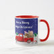 Pequeño Camión Rojo y alfombra blanca antigua. Presentando la obra original "Little Red Truck" de Rick Ellinger. Texto: ¡Ten una Feliz Navidad! La colección de antigüedades incluye un tractor rojo antiguo. Un regalo perfecto para el recolector de camiones rojos o anticuario o coleccionista de su lista de regalos.