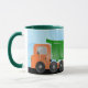 ¡los camiones volcados dimensionales que cuelgan alrededor de esta taza ciertamente harían que cualquier niño quisiera beber su leche!