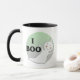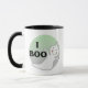 Camisetas, tazas, naipes, pegatinas, bolsos de té o de regalo, botones e imanes de Halloween, y otras prendas de diseño fantasma de Halloween que presentan a un fantasma y un texto que lee ¡I Boo!