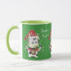 Una taza divertida para celebrar la temporada de fiestas con una vaca suiza que está logrando decorar su casa con las luces de sus Navidades. También dice "Joyeux Noël" en letras blancas :) ©ArianeC Ilustraciones