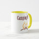 Un buen tazón de café sólido con "tazón de camping" escrito en él y una fogata ruidosa. Lleve esto a sus suministros de camping y siempre estará listo cuando lo esté. Personalice el nombre de su familia o el del complejo.
