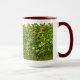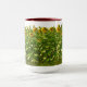 UN CAMPO DE GIRASOLES ADORNA ESTA TAZA DE CAFÉ.