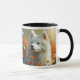 ¡Esta taza de bonito celebra al perro Samoyed! Dos lados de la taza tienen un retrato de un hermoso Samoyed blanco en un campo de flores naranjas y blancas. En la parte superior central está el guión que dice Samoyed, pero puedes cambiarlo o incluso personalizarlo, si lo deseas. ¡Esta taza se dará cuenta!