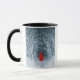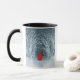 Pequeña Caperucita Roja en un invierno nevado caminando por el bosque. ¿Puedes ver al Gran Lobo Malo aullando a la distancia? Una versión borrosa de una pintura acuarela negativa.