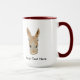 Añada una cara del burro de la mañana con sonrisa a su diseño de la taza con la taza del campanero. La manija y el labio de la taza se colorean para hacer juego. 11 onzas. o 15 onzas. Disponible en 10 colores. Lavaplatos y caja fuerte de la microonda. Importado.