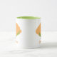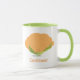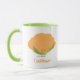 Mug con un sonriente personaje de Cauliflower naranja. El texto se puede personalizar.