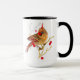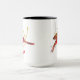 Dibujos a mano de cardenales machos y hembras en ramas de árboles de color dorado de muros de invierno con una nevada ligera. Trae un espíritu festivo de Navidades a tu fiesta de entretenimiento o regalos con esta taza -o durante todo el año. Por el Diseñador de patrones de superficie, L Diane Johnson.