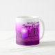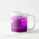 Taza cariñosa de la púrpura de las manos de la
