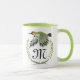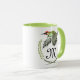 Un pájaro carpintero verde ilustrado en vuelo con laurel de trigo. El espacio blanco en el laurel está diseñado para un monograma y puede ser personalizado para su inicial personal.