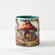 Encantadora casa de hadas con toadstool con un nombre editable. Una hermosa casa de hadas con tejado de setas rojas y blancas y pequeñas ventanas. Rosas por la puerta. Tetera también disponible.