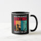 La taza de caza de venados padre e hija presenta una silueta de un hombre y una hija con rifle y arco cazando ciervos y texto que lee Padre e Hija Cazando Buddies For Life.