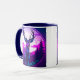 Une image féerique et futuriste avec cette illustration d’un cerf majestueux évoluant dans un décor néon fascinant. Ses teintes vibrantes de bleu et de violet contrastent magnifiquement avec un fond montagneux baigné de nuances roses et mauves, créant une ambiance à la fois mystique et moderne. Ce design artistique unique allie l'élégance de la nature et un style cyberpunk captivant, idéal pour les passionnés d’illustrations numériques, de faune et d’univers fantastiques. Une image immersive qui invite à la contemplation et à l’évasion.
