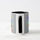 Una taza de café con una imagen meditativa centrada alrededor de los Chakras, con la frase "Rompe del tubérculo" centrada debajo del diseño. Los chakras representan centros de energía en el cuerpo, sugiriendo un escape pacífico de las tensiones diarias a través del equilibrio espiritual y la atención.