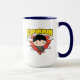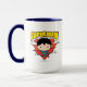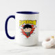 Echa un vistazo a Chibi Superman volando en las nubes con su súper nombre de héroe sobre la cabeza y forma de escudo de puntos de polka rojo detrás de él.
