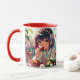 Café personalizado. Un lindo chica de anime con el pelo negro y una banda rosa con flores comiendo fresas recién recolectadas en un día de verano. ¡Qué lindo para cualquier chica que ame el anime!
