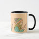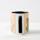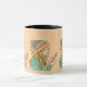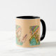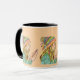 Mug con fondo de mandarina que muestra a un chica en un gorra boho escuchando música.g