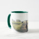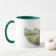 Una taza con la fotografía vignetted de Chloe el canguro y el Sam el perro pastor en su paseo de la mañana