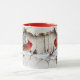 Bring warmth and wonder to your mornings with this stunning Christmas Cardinal Mug. Featuring a pair of vivid red cardinals perched in a snowy birch forest scene, the design appears to peek through a rustic, cracked wall — creating a charming 3D illusion. With its red handle and interior, this mug beautifully complements the festive artwork, making it a perfect holiday gift for bird lovers or anyone who cherishes the peaceful magic of winter mornings.