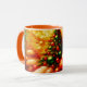 A customized coffee with a photo of a well decorated Christmas tree with big, bold flowers. A perfect Christmas gift.