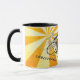 Esta taza cuenta con dos ciclistas de silueta con un fondo de rotura de sol de estilo retro. Se puede personalizar con un nombre o cualquier texto que desee agregar. -