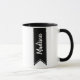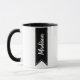 Mug blanca y negra con una cinta de bandera negra que muestra tu nombre en un lindo guión blanco.