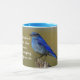 Esta fresca jarra presenta una impresionante foto de un pájaro azul de la montaña con la inspiradora cita "Sé como el pájaro azul que nunca es azul, porque sabe por su crianza lo que el canto puede hacer". Fotografía creada por la galardonada fotógrafa Maria Jeffs.