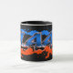 Eine sehr schöne stylische personalisierte Tasse / Kaffeetasse / Teetasse im Graffiti Urban Streetart blue orange Design für Claas.