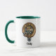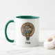 Insignia escudo del clan Craig rodeada por una correa y hebilla sobre el fondo del tartán. Texto personalizado en ambos lados.