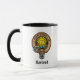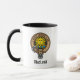 Clan MacLeod de la insignia escudo Lewis rodeada por una correa y hebilla sobre el fondo tartán. Texto personalizado en ambos lados.