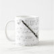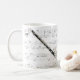 Taza con partitura y el clarinete bajo. Gran regalo para los músicos y los amantes de la música.