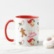 Esta taza de café con diseño navideño presenta un adorable diseño clásico/retro de Papá Noel, un bastón de caramelo y una galleta de jengibre. Utilice esta taza para todas sus bebidas calientes de las fiestas.