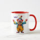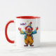 Clown joyeux avec grand sourire et bras ouverts disant "Hello !" Avec son grand nez rouge, son chapeau pointu rigolo et son costume coloré plein de taches, ce clown joyeux ouvre grand les bras comme pour faire un gros câlin, son sourire immense et ses yeux pétillants de malice donnant envie de rigoler, tandis que ses chaussures énormes et son col à pois ajoutent encore plus de fantaisie à son allure amusante, comme s’il était prêt à faire une blague pour faire éclater de rire tout le monde en lançant un grand "Hello !"