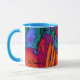 ¡Un arte abstracto más colorido del ser humano - equipo canino PiCassieO! ¡El borde azul brillante coge los colores en el arte y hace esta taza una revelación para su brew de la mañana! Y sí, Cassie lo comenzó todo con esa nariz talentosa el suyo.