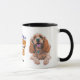 "Tú haces mi perilla de cola" declara esta linda taza con la imagen de un feliz perro Cocker Spaniel a cada lado del texto. Es muy agradable para el dueño del Cocker, pero apropiado para cualquiera. Puede agregar el nombre de alguien en el centro inferior o borrar el texto, si lo desea.