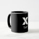 Este diseño es una representación visual del alfabeto fonético de la OTAN y del código morse "-.-" para la letra X. La letra X está representada por la palabra "rayos X" en el alfabeto fonético de la OTAN.