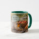 Coffee before gardening, personal morning garden with robin bird, photo mug.