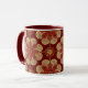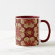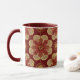 Esta taza decorativa presenta un patrón de medallones de oro en el vino. El interior y la manecilla de la taza son marrones. Este patrón se origina en un diseño de mosaico original. Los entresijos y los colores intensos le dan un toque bohemio. Los colores son el ocher y el melocotón, sobre un fondo de vino. Use esto en su cocina, baño o chimenea. Es perfecto para su casa de campo o casa de campo. Este diseño proviene de la marca de baldosas de Oregón Fay Jones Day.