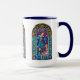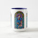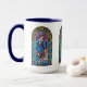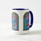 Coffee mug Peace-on-Earth Pre-Raphaelite Xmas. Paz en la Tierra estilo pre-Raphaelite Navidad / taza de cerámica de Año Nuevo. Con ilustraciones en color agua y lápiz de colores, de un diseño de vidrio manchado después de Burne Jones. La paz en la Tierra se puede dar en la época del Navidad o en el Año Nuevo. Añade tu propio mensaje o nombre a la taza si lo deseas.