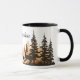 Esta taza de café de cerámica se muestra con una huella de ciervo en el bosque con texto de Yellowstone. Interior negro y manija. Personalizar este artículo o compra tal cual.