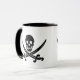 Esta combinación de tazas blancas y negras tiene una imagen de un cráneo pirata a ambos lados de la taza. Personalizar este artículo o compra tal cual. Imagen de stock all-free-download.com